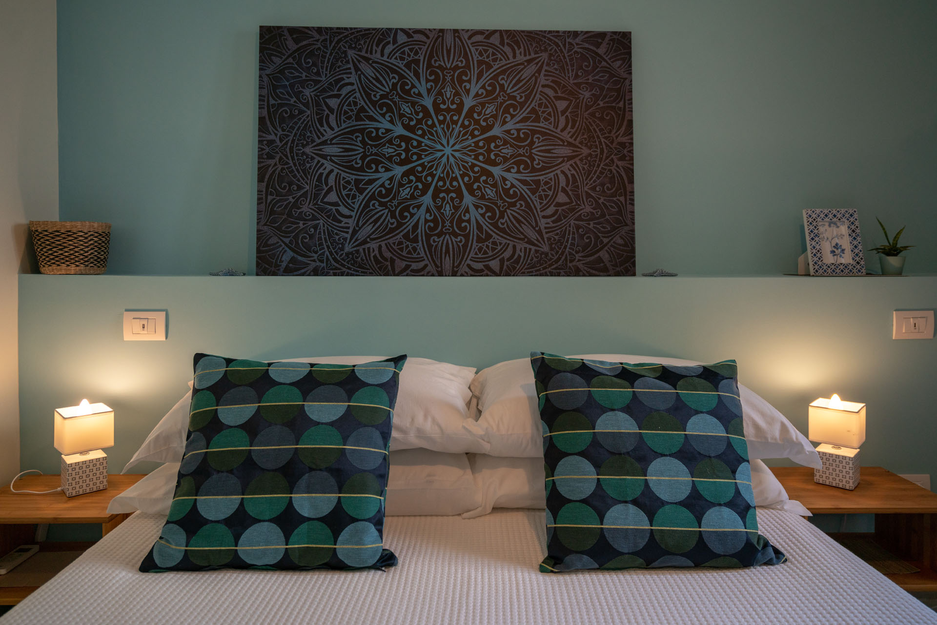 Questa è la stanza ispirata all'ambiente "glaciale" e "marino”. Colori prevalenti: azzurro, blu, blu intenso-petrolio, verde, bianco.
